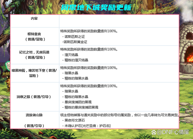 其次是奖励内容变更,根特皇宫、记忆之地、无底坑道、暗黑神殿、痛苦地下城、洞察之眼等副本,特殊奖励所获得的材料数量提升至100%,给了“爆肝”刷胚子增幅的玩家,反而提供了契机。