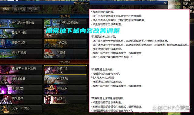 【2】周常地下城调整。针对周常地下城,从两个方面来调整,分别是内容改善和奖励变更。首先在内容改善层次上,魔界大战、洞察之眼、流放者山脉、黑鸦之境副本,整体的难度已降低,让玩家更加得心应手,减少通关的时间。