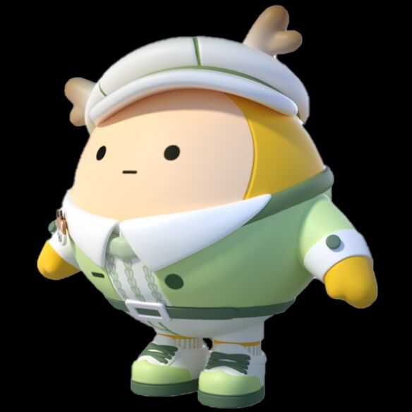 作为一名优雅绅士,浅绿色外套简约大方。内衬则以白色为主,胸口绣着浅绿色繁复花纹,设计感十足。Q版萌鹿胸针与斜戴的鹿角贝雷帽彰显绅士鹿身份,可爱又不失率性。