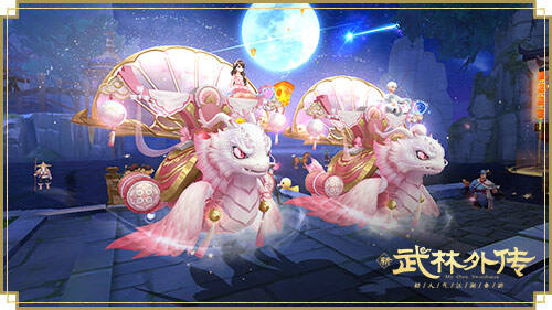 与君相思,同乘遨游!爱情氛围满满的双人坐骑即将在武林江湖中登场!超帅气的瑞兽,搭配粉红骑乘挂饰,等待与少侠见面!