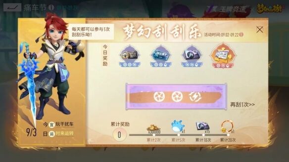 剑侠客出手,果然不一般!如此多江湖好礼实在是看得人眼花缭乱——万能零件、排位保护卡、传说蓝图碎片…应有尽有。9月2日9月22日,在梦幻刮刮乐活动中,每日都将随机生成1个超级奖励及3个普通奖励,车手们刮取图案即可领取对应奖励哦每日都可以免费参与1次刮刮乐,江湖宝物“刮”出来,车手们准备好了吗?